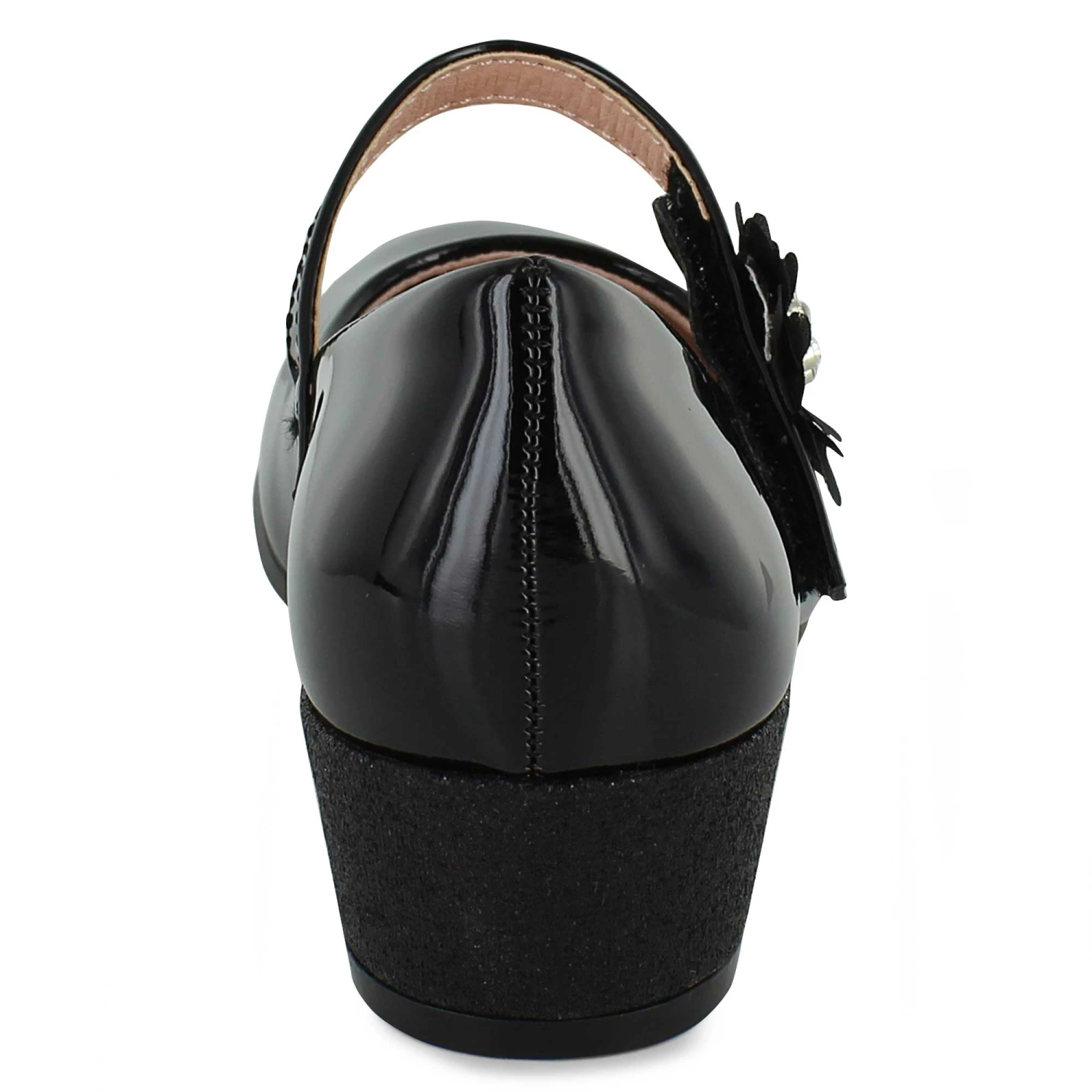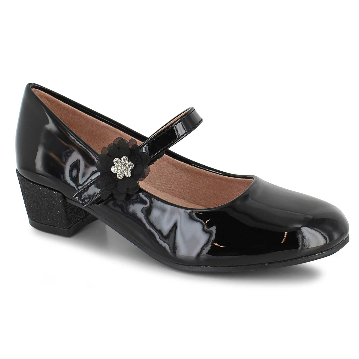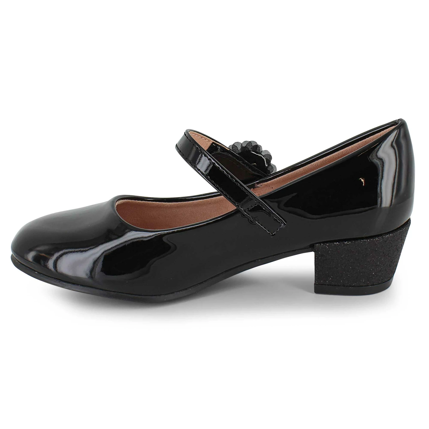 Dress up any formal event with a new pair of shiny patent heels. These cute shoes are a simple way to add just the right touch to your party. The decorative flower accent and subtle glitter block heel are perfect touches, and won’t overwhelm or distract from the big day.