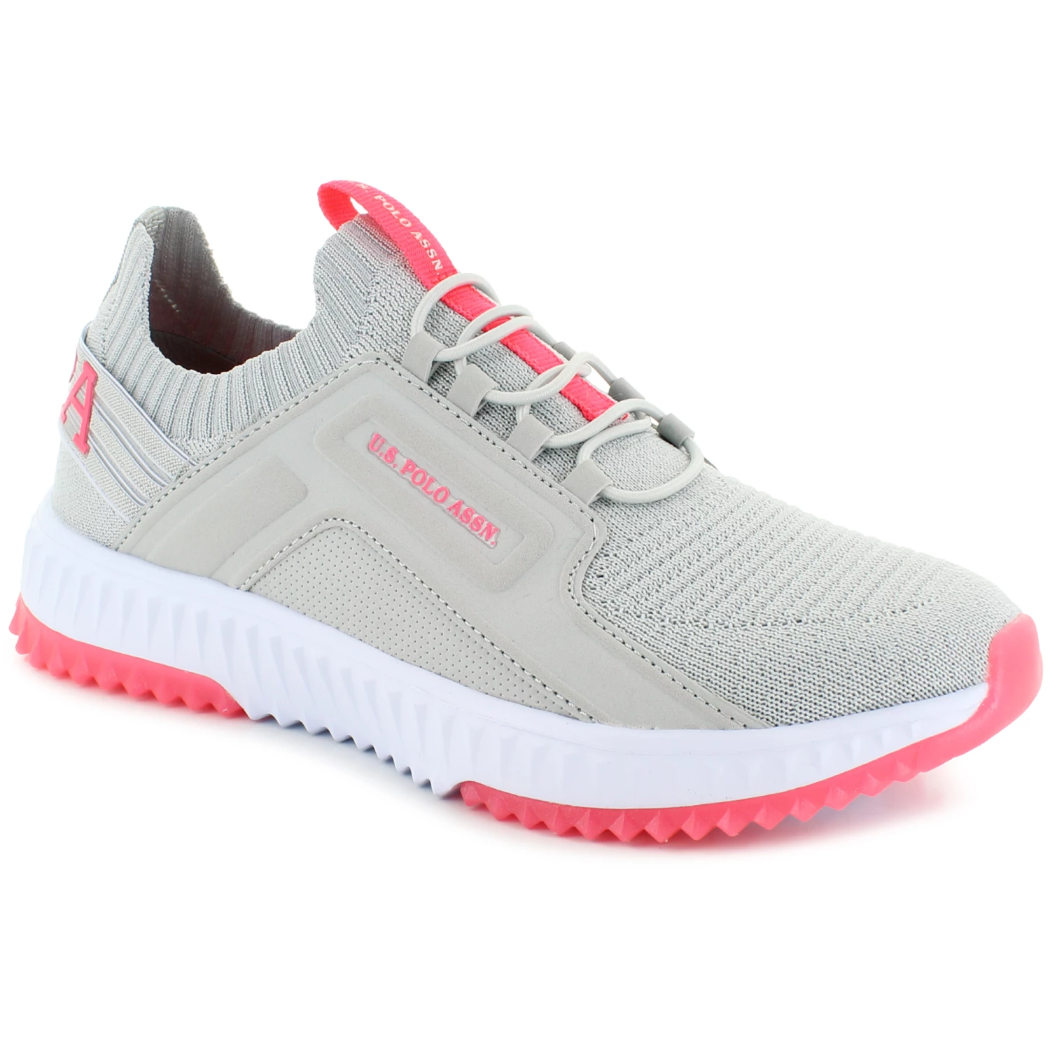 Slip on sporty comfort with the U.S. Polo Association Flint-K. This athletic slip-on features a bungee laced front panel for a snug and comfy fit. The knit mesh fabric upper will provide breathability for all day wear.