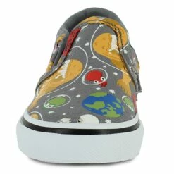 Ensure comfort and style with playful Vans casuals. Whether they’re exploring the galaxy with space fish or just playing in the park with friends, these fun shoes will keep them comfortable throughout. A hook-and-loop closure on the side ensures a secure fit all day long.