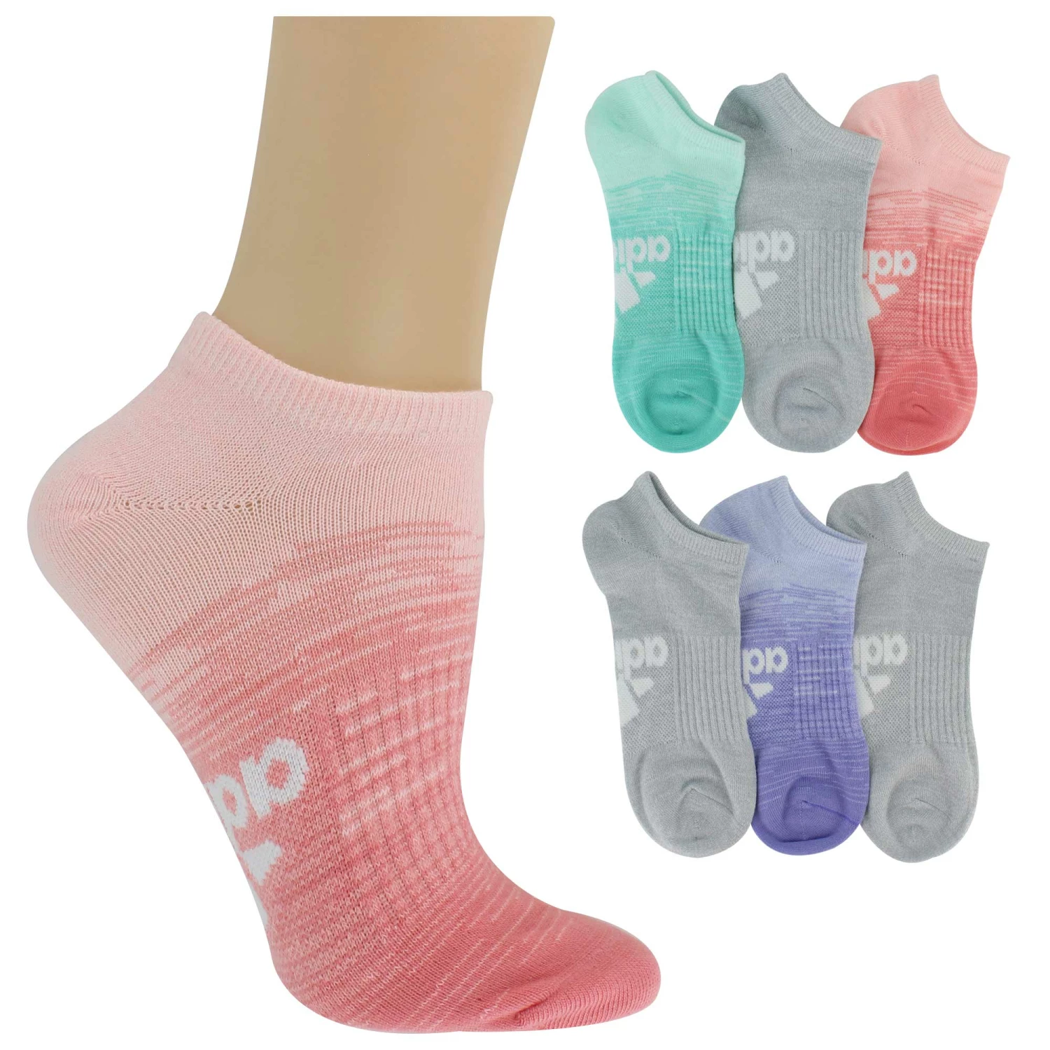 This color-fade assortment of adidas no-show socks are a great choice for a warm casual day or a workout at the gym. They feature a built-in wicking feature to keep your feet dry and comfortable. This multipack offers colors that are versatile enough to pair up with many different outfit choices.