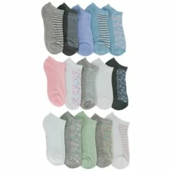 Stock up and save with this awesome 15-pair pack of no-show socks by Danskin. This assortment is comprised of neutral colors and floral, striped and solid patterns. There are certain to be a pair to match almost every outfit as you go out on your casual adventures.