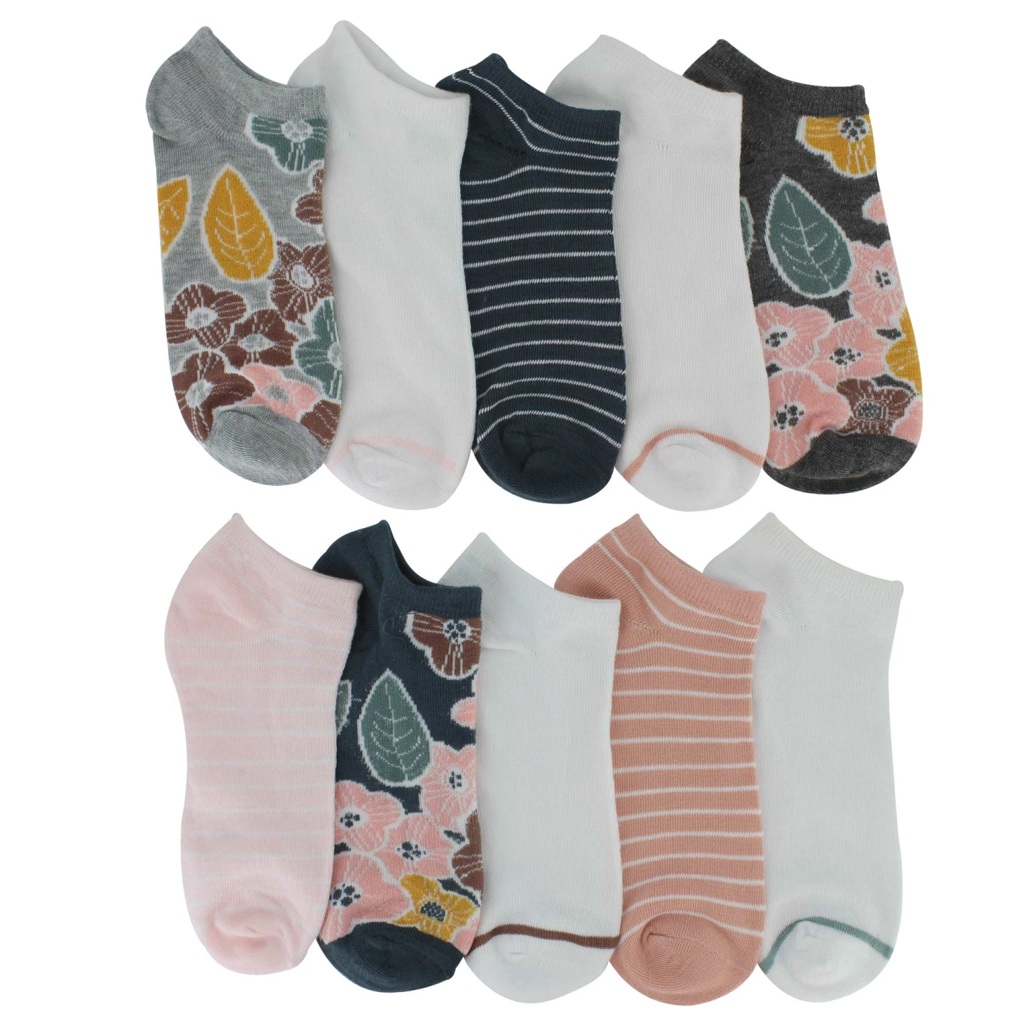 Take a fresh step with this floral-print bundle of no-show socks from Jessica Simpson. This assortment consists of neutral colors that are sure to pair well with multiple outfit choices. You can be stylish and smart by choosing to save money with this awesome deal.